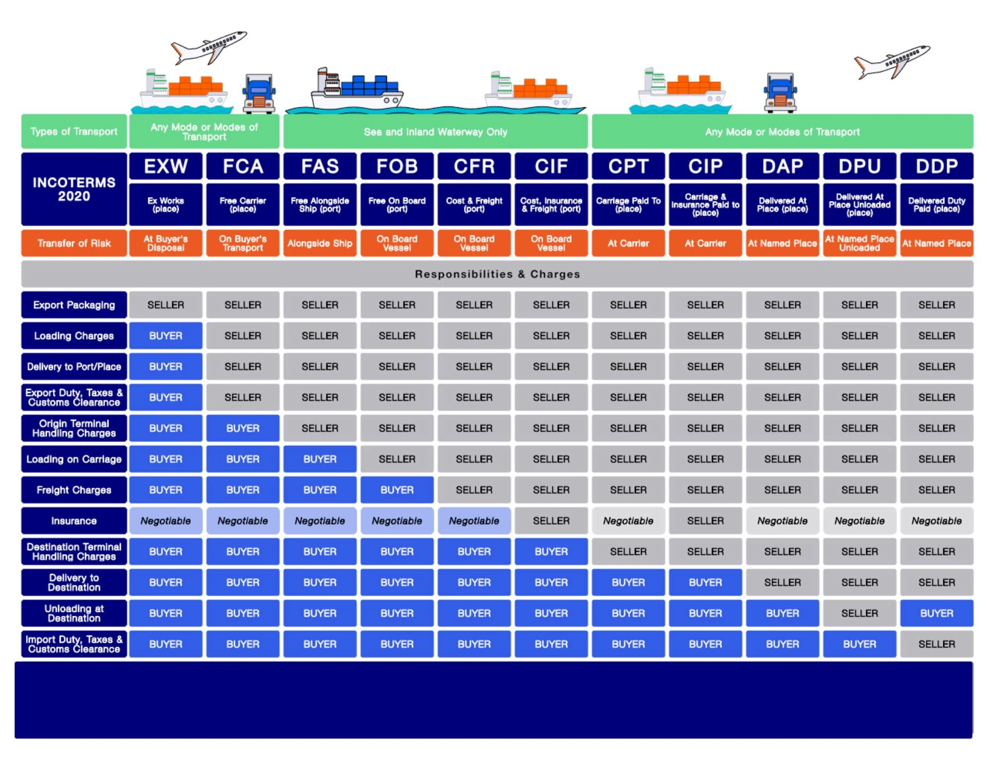 Use the below guide to help give you a heads start when clarifying the responsibilities of trade when you ship with ETA!